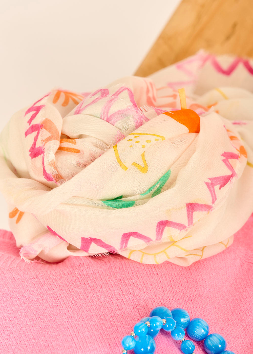 Das verspielte Muster dieses VIAMORI Tuchs erinnert an sonnige Tage in Italien und bringt die italienische Lebensfreude in deinen Look.