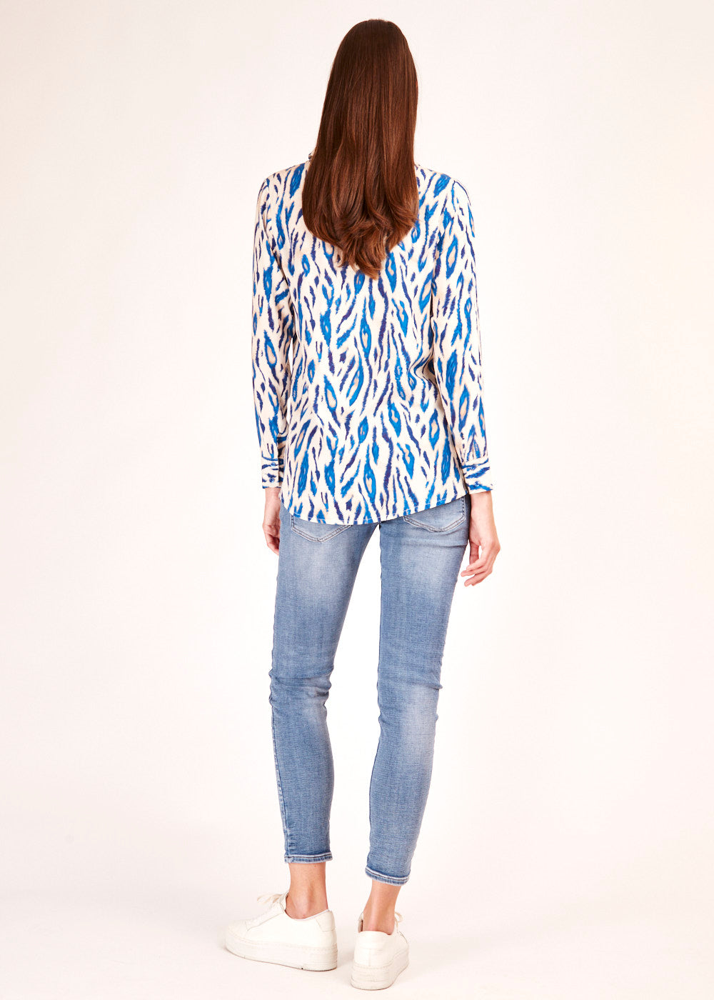 Mit dieser blauen Viskosebluse im trendigen Leoprint setzt du ein modisches Statement. Der weiche Stoff umschmeichelt deine Haut und verleiht dir einen Hauch von Eleganz für jeden Anlass.