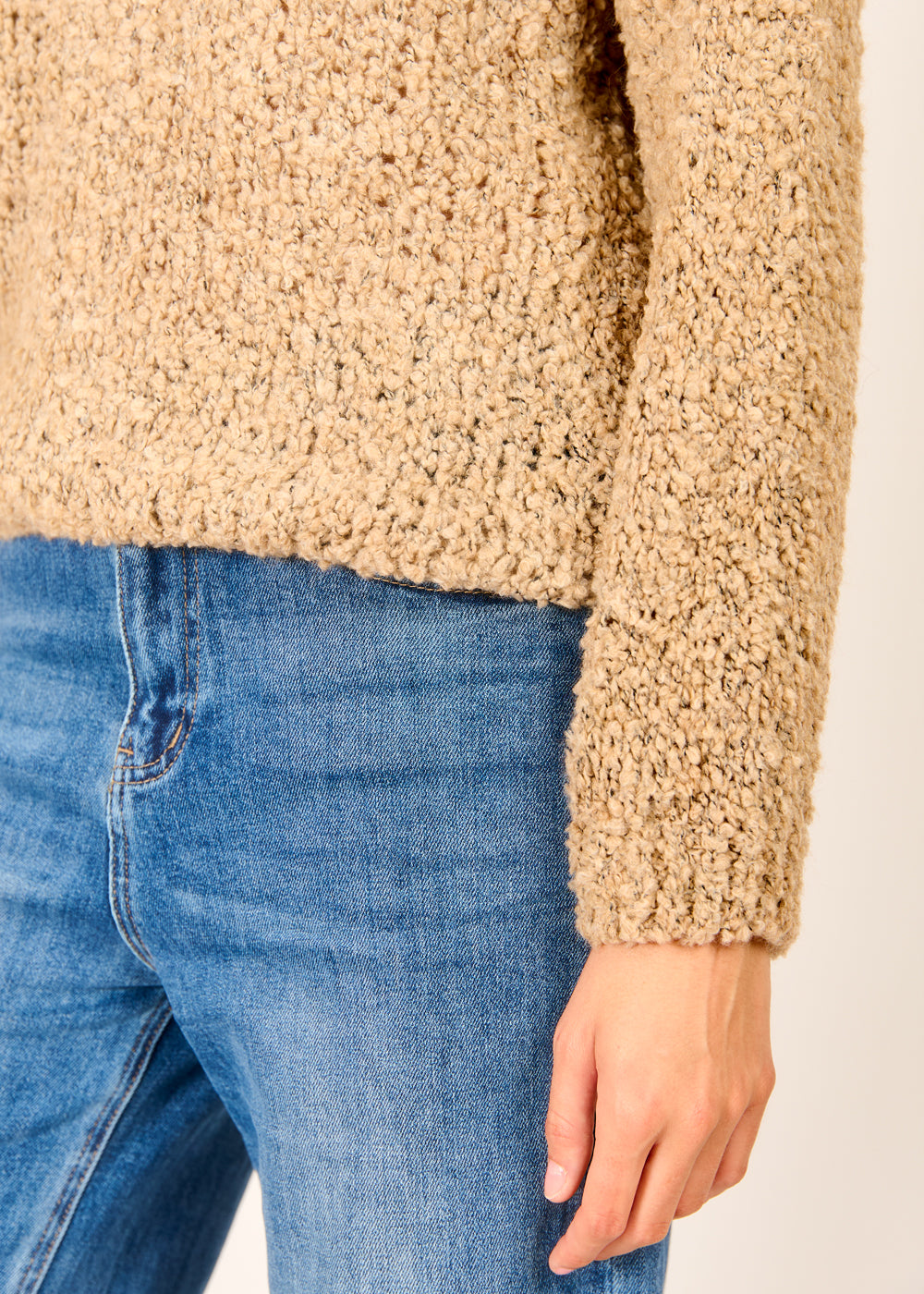 Der Bouclé-Pullover in warmem cappuccino bringt stilvolle Leichtigkeit und einen Hauch von Eleganz in den Alltag. Die markante Struktur des Bouclé-Stricks macht ihn zu einem besonderen Eyecatcher mit gemütlichem Charme. Dank seines entspannten Schnitts überzeugt er mit hohem Tragekomfort und moderner Lässigkeit. Ob zu Jeans oder Rock – dieser Pullover ist ein vielseitiger Begleiter für trendbewusste Looks.