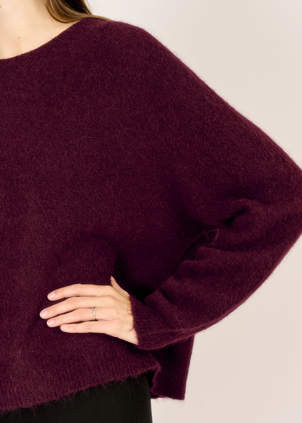 Dieser weiche, anschmiegsame Strickpullover umhüllt dich. Der Vino-Ton verleiht deinem Look eine warme, moderne Ausstrahlung. Ob lässig im Alltag, elegant für besondere Anlässe oder mit der passenden Hose als monochromer Look gestylt – die Kombinationsmöglichkeiten sind endlos.
