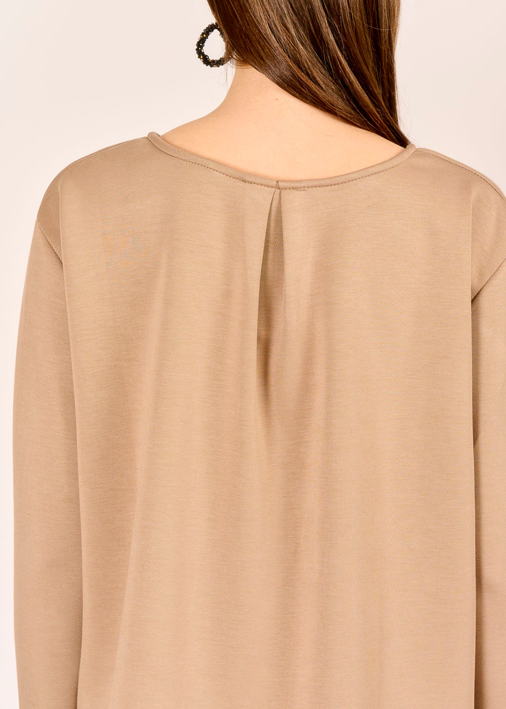 Dieses edle Shirt überzeugt mit raffiniertem Rücken und bietet eine sportliche, moderne Alternative zur klassischen Bluse. Besonders stilvoll lässt es sich mit einer edlen Pantalone für die Feiertage kombinieren – für ein bequemes Outfit, das Komfort und Eleganz mühelos vereint.