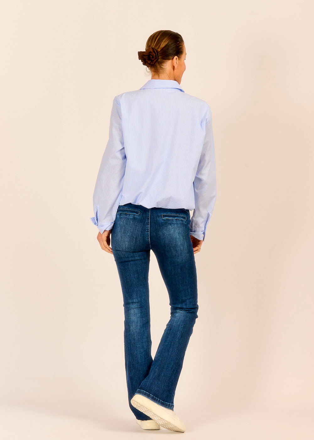 Die dunkelblaue Bootcut Jeans mit Stretch und Ziertaschen am Gesäß schmeichelt der Silhouette und streckt das Bein. Dunkles Denim wirkt zeitlos und ist der perfekte Stylingpartner.