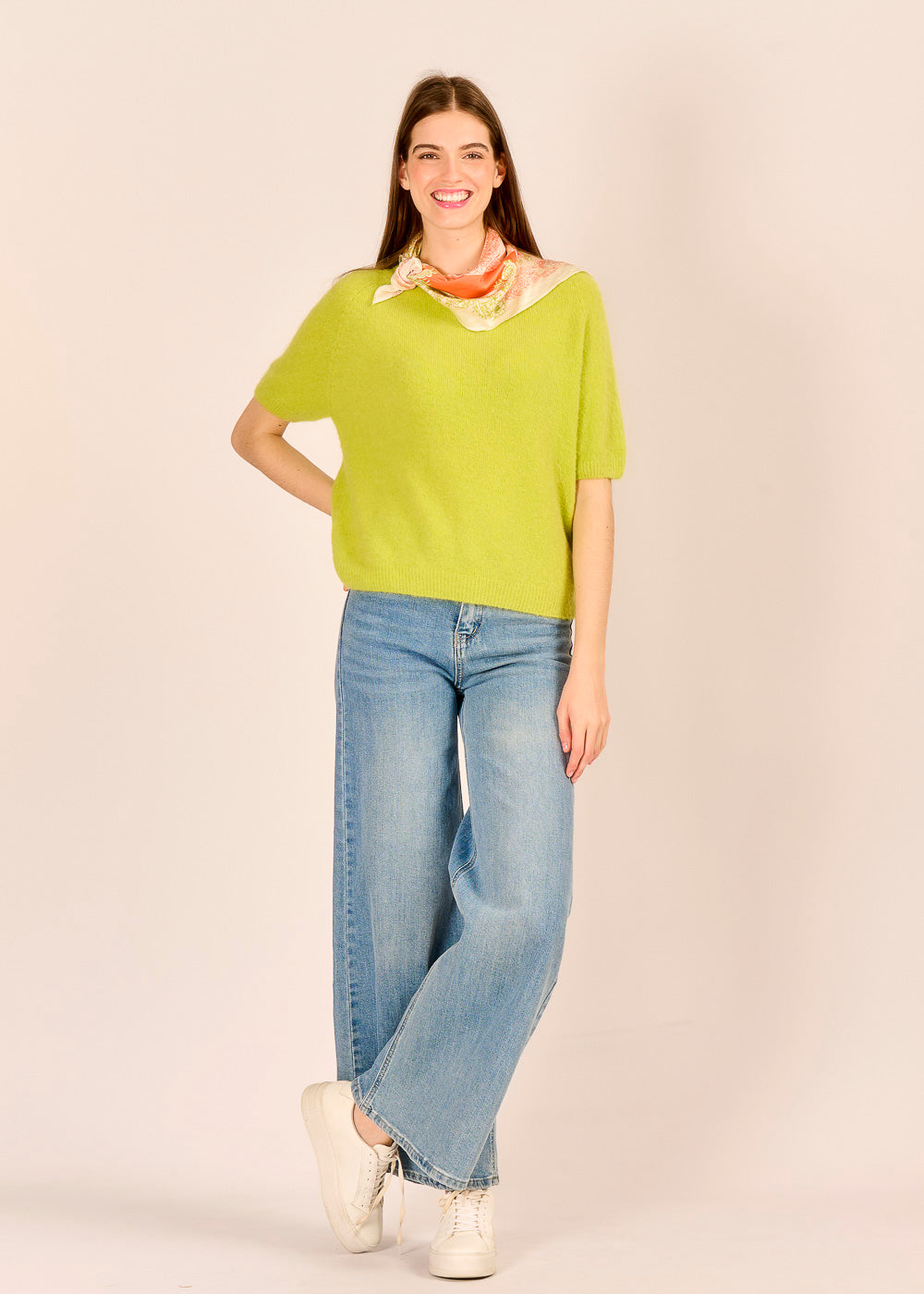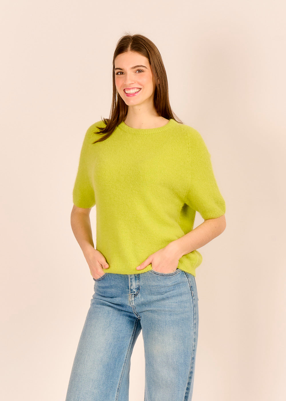 Der Halbarm-Strickpullover mit Babyalpakawolle erinnert an Pistazieneis unter italienischer Sonne. Fein gestrickt und wunderbar weich umhüllt er dich an kühlen Übergangstagen.