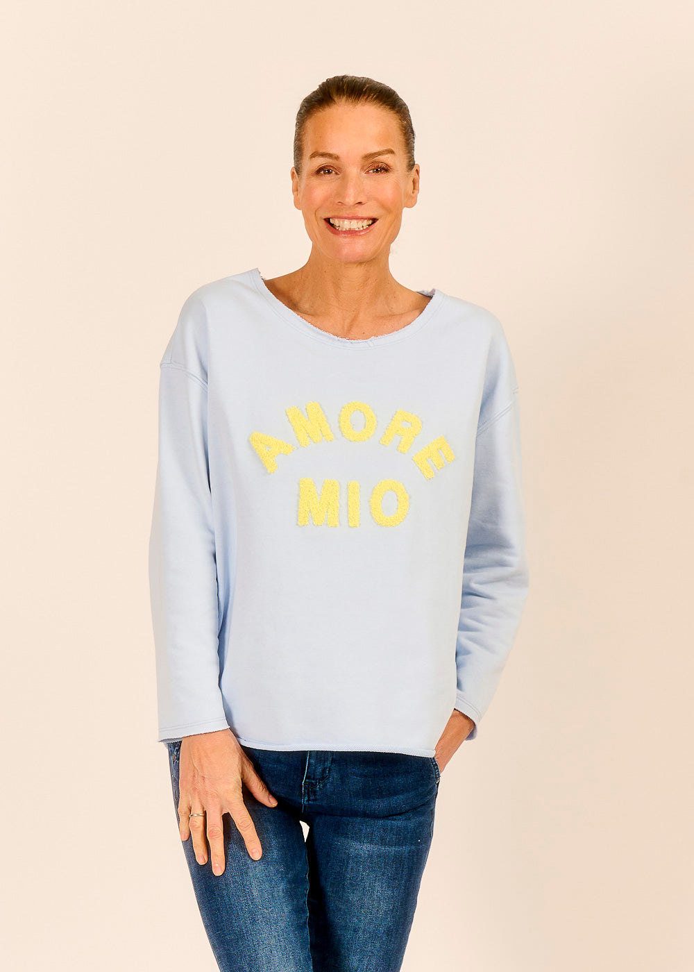 Das lässige Sweatshirt bringt italienische Herzlichkeit direkt in deinen Alltag. Die fröhliche Amore-Mio-Stickerei ist eine Liebeserklärung an das Leben. Der entspannte Schnitt und die weiche Baumwolle sorgen für ein angenehmes Tragegefühl.