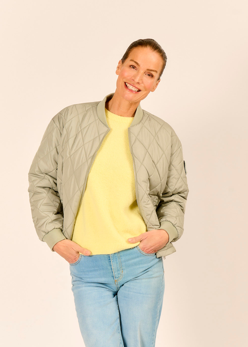Die Steppjacke in der Farbe Pistacchio ist perfekt für den Spaziergang durch den Frühlingsgarten. Der kürzere Schnitt wirkt modern und lässig – perfekt zu High-Waist-Jeans. Ein echtes Lieblingsstück für alle, die es entspannt und zugleich trendbewusst lieben.