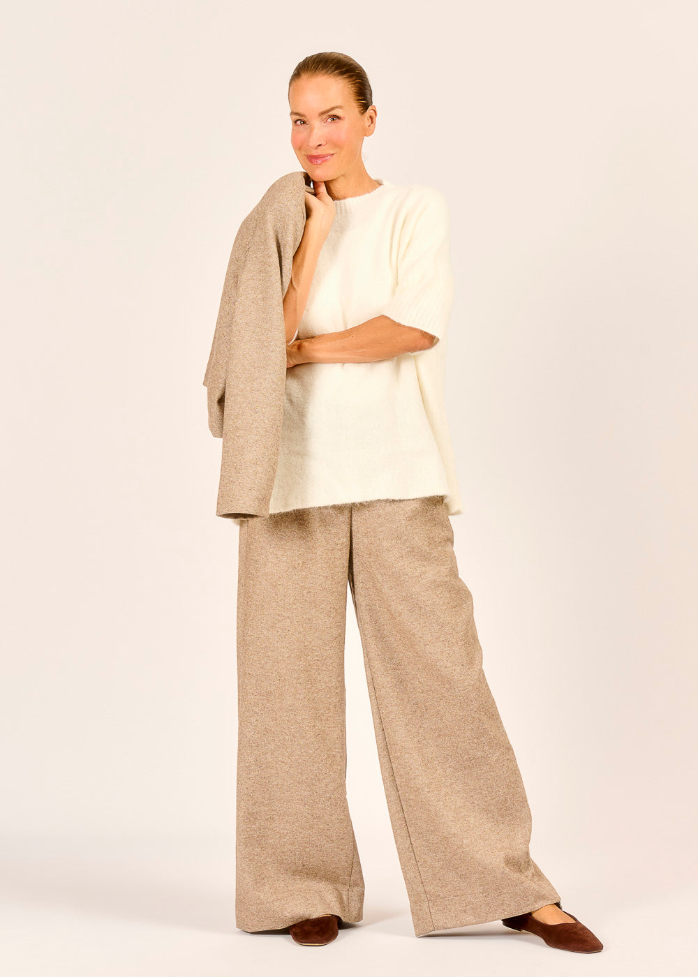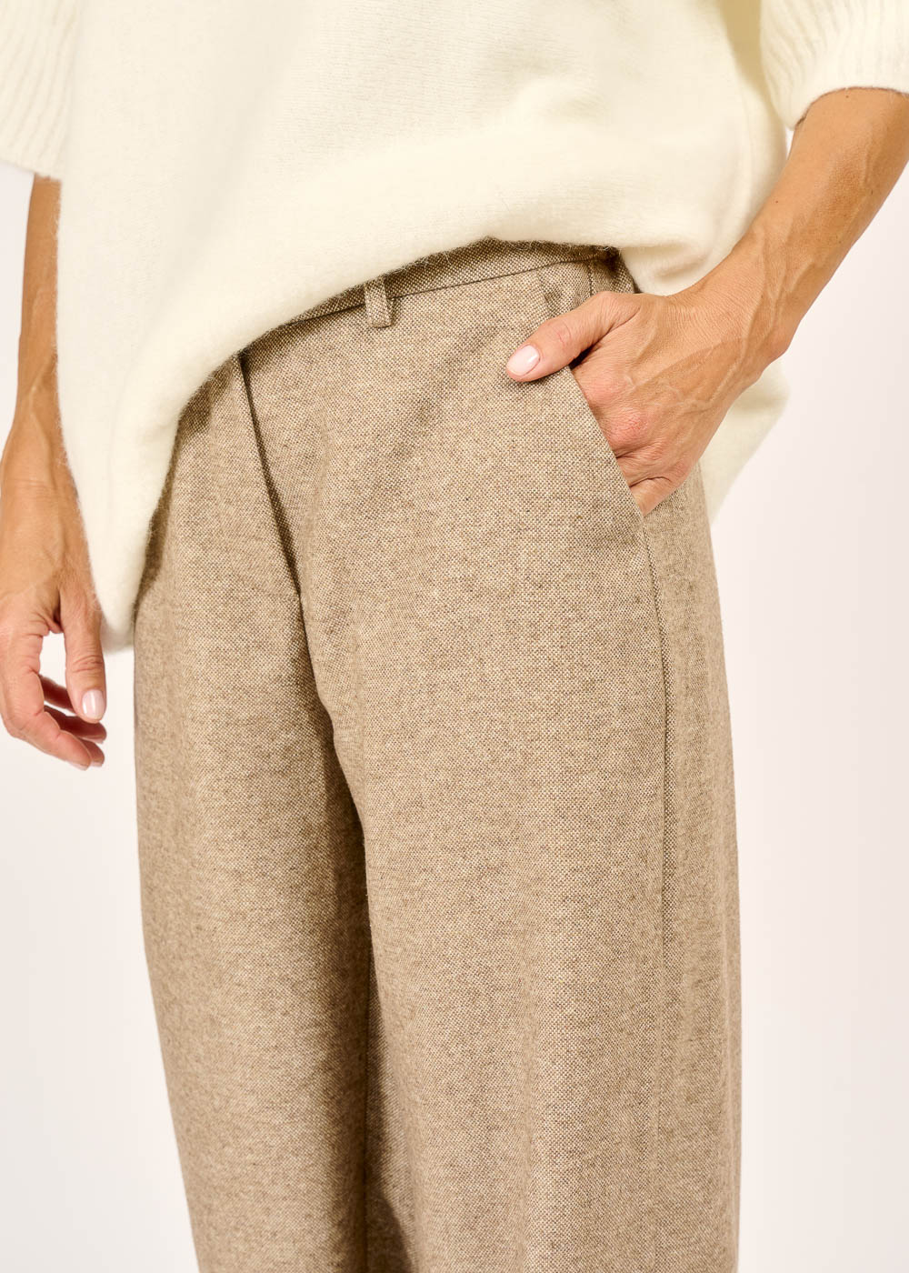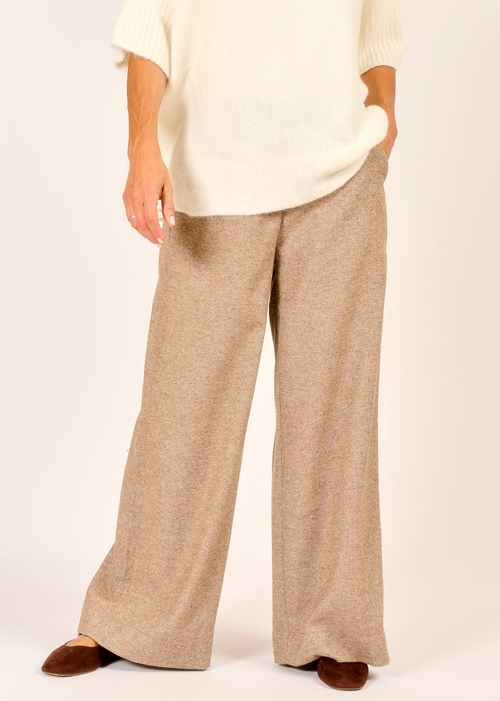 Die perfekte Symbiose aus Stil und Bequemlichkeit: Eine Hose in warmem Karamell, die durch ihren weiten, fließenden Schnitt überzeugt. Gefertigt aus einem angenehm weichen Material, umspielt sie die Beine und bietet maximalen Komfort. Ein vielseitiges Essential, das sowohl im Set als auch solo getragen werden kann und Ihrem Outfit eine mühelose Eleganz verleiht.