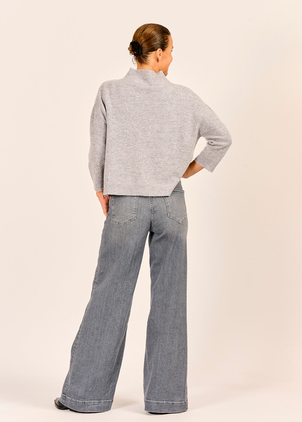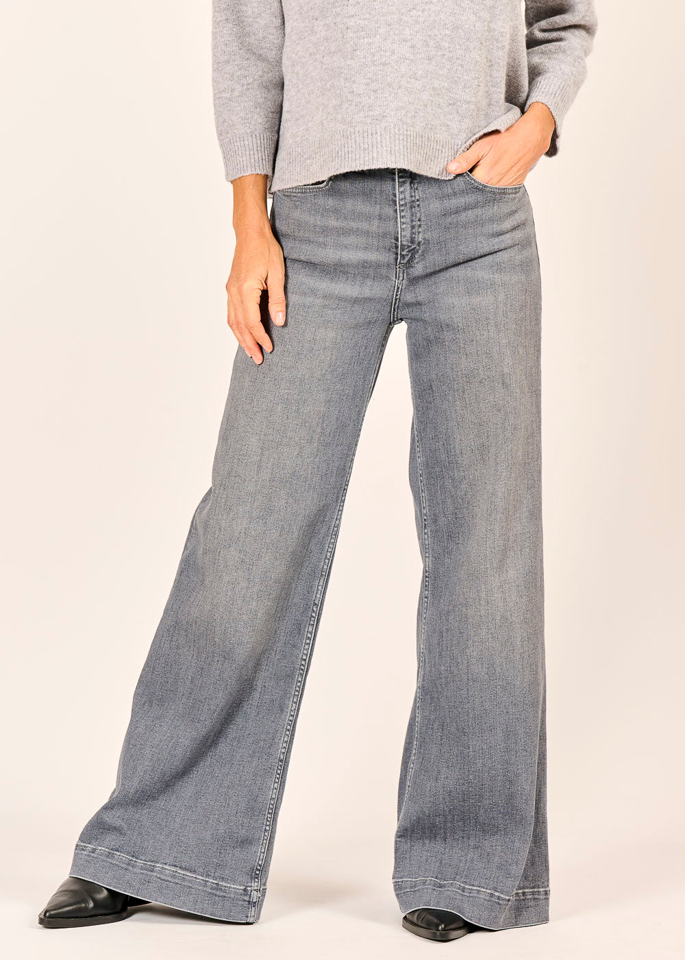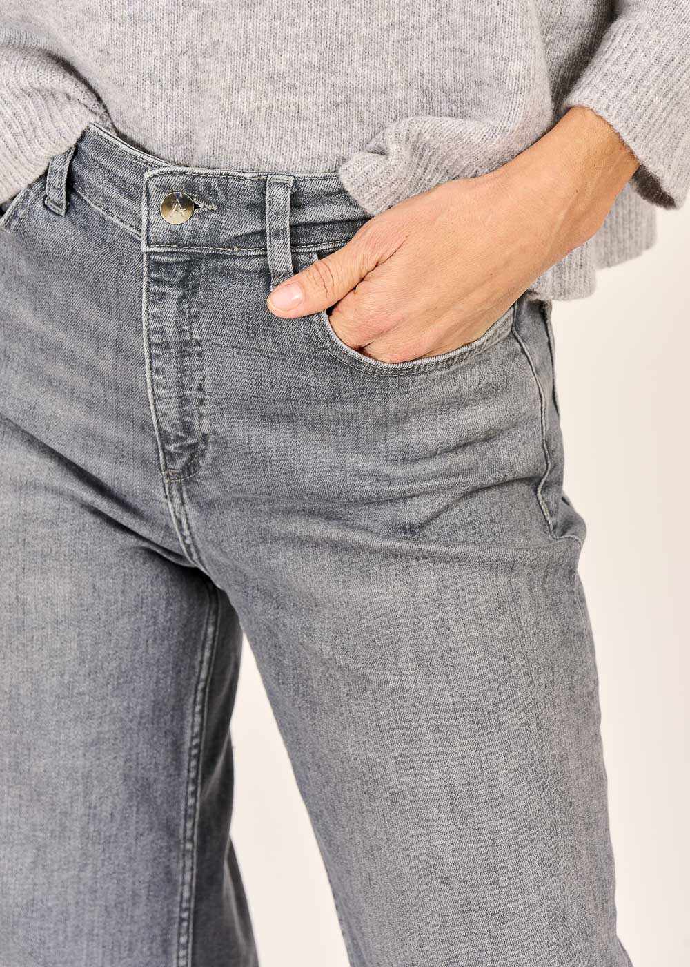 Diese moderne Marlene Jeans in edlem Grau interpretiert den Retro-Trend mit einem zeitgemäßen, weiten Schnitt neu. Der hohe Bund und die fließende, weite Passform sorgen für eine optisch streckende Silhouette und höchsten Tragekomfort. Kombinieren Sie das Denim-Statement mit figurbetonten Oberteilen oder Strick für einen lässigen und zugleich eleganten Look.