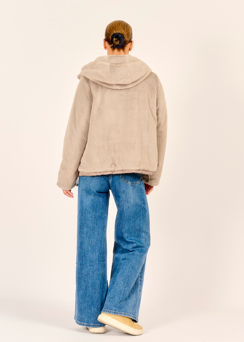 Ein echtes Must-have für die kommende Saison: Eine kuschelige Jacke in angesagtem Teddy-Stoff, die mit ihrer kurzen Passform und der warmen Taupe-Farbe begeistert. Sie ist der perfekte Begleiter für kalte Tage und lässt sich vielseitig kombinieren, ob zu Jeans oder eleganten Hosen. Mit ihrer lässigen Kapuze und dem angenehmen Tragegefühl wird sie garantiert zu Ihrem neuen Lieblingsteil.