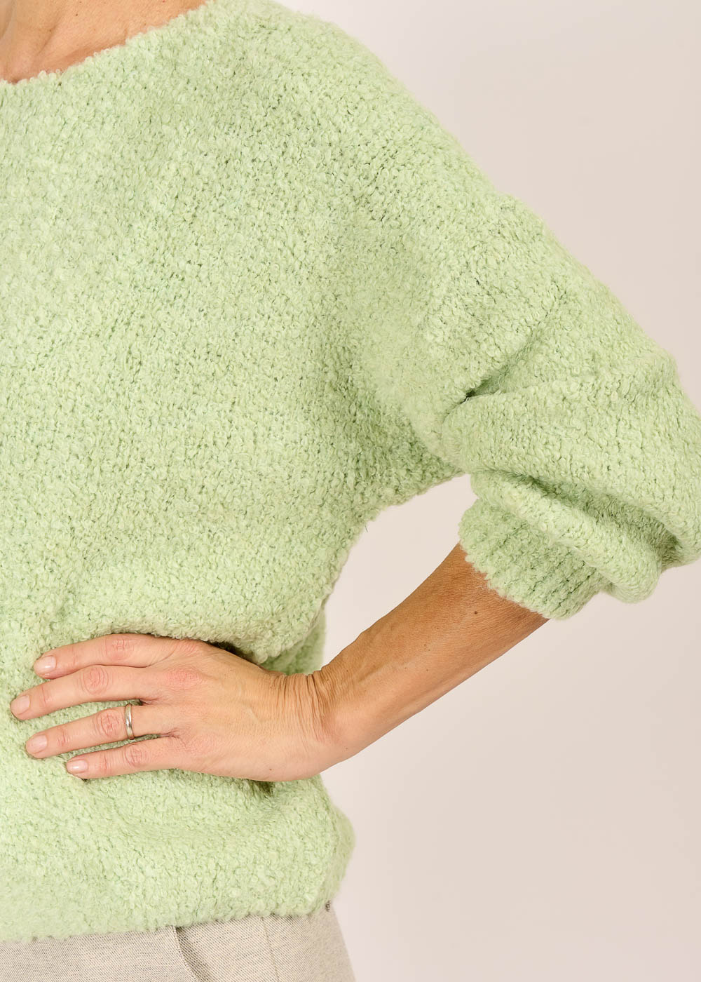 Dieser Bouclépullover in der zarten Farbe Salvia begeistert mit seiner kuscheligen Textur und lässigen Eleganz. Das weiche Material sorgt für ein angenehmes Tragegefühl und macht ihn zum perfekten Wohlfühl-Piece. Für den perfekten Look gibt es den passenden Schal dazu – ideal für stilvolle, harmonische Outfits.