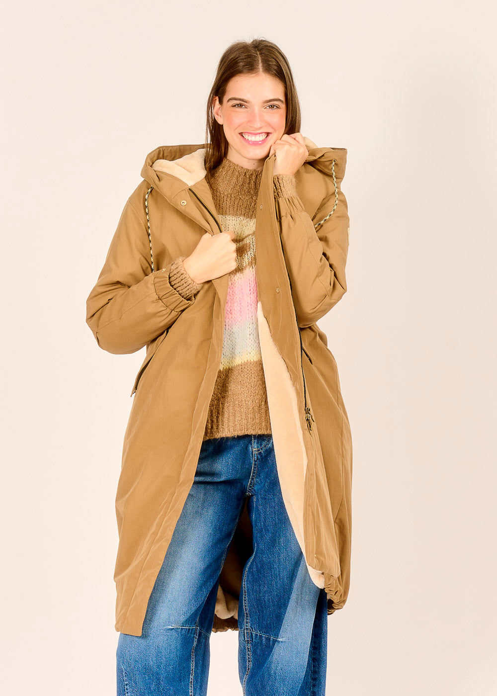 Ein echter Allrounder für die Übergangszeit: der Longparka von Como No. 1 in dezentem Beige. Das lange, knieumspielende Design und das wasserabweisende Obermaterial schützen dich zuverlässig vor Wind und Wetter. Für kuschelige Wärme sorgt die Kapuze mit weichem Teddystoff-Futter. Dank des Zwei-Wege-Reißverschlusses und den praktischen Eingrifftaschen ist dieser Parka der perfekte Begleiter für jeden Tag.