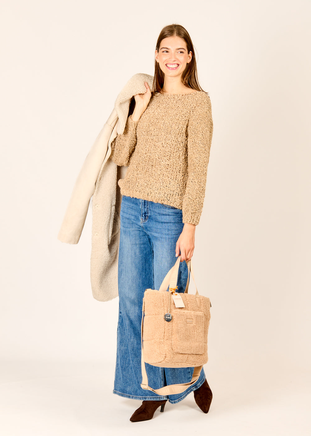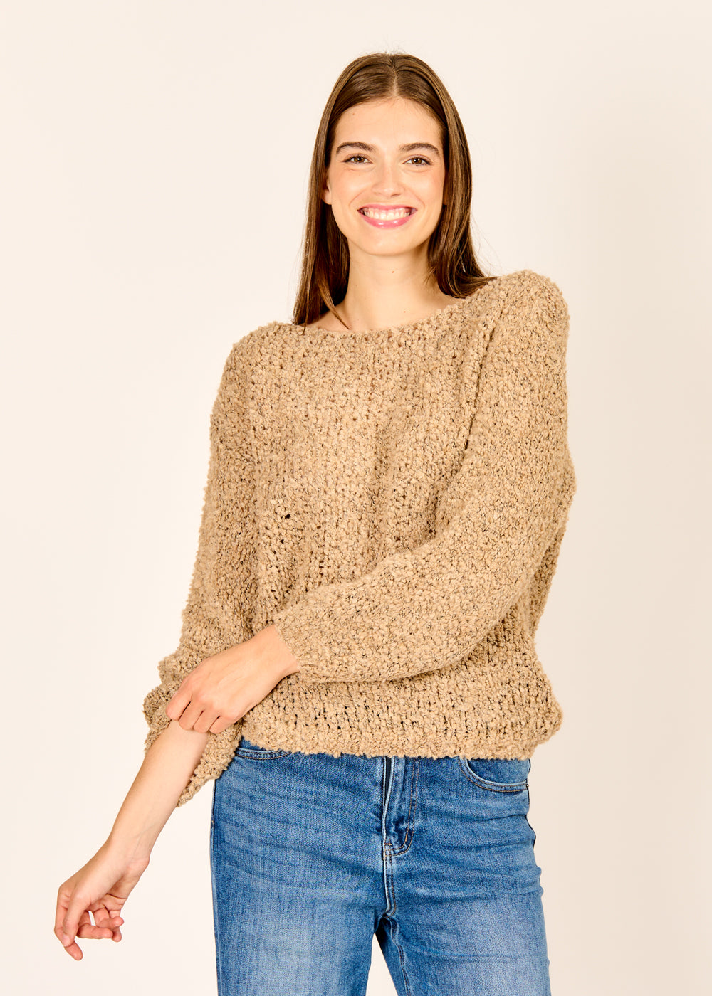 Der Bouclé-Pullover in warmem cappuccino bringt stilvolle Leichtigkeit und einen Hauch von Eleganz in den Alltag. Die markante Struktur des Bouclé-Stricks macht ihn zu einem besonderen Eyecatcher mit gemütlichem Charme. Dank seines entspannten Schnitts überzeugt er mit hohem Tragekomfort und moderner Lässigkeit. Ob zu Jeans oder Rock – dieser Pullover ist ein vielseitiger Begleiter für trendbewusste Looks.