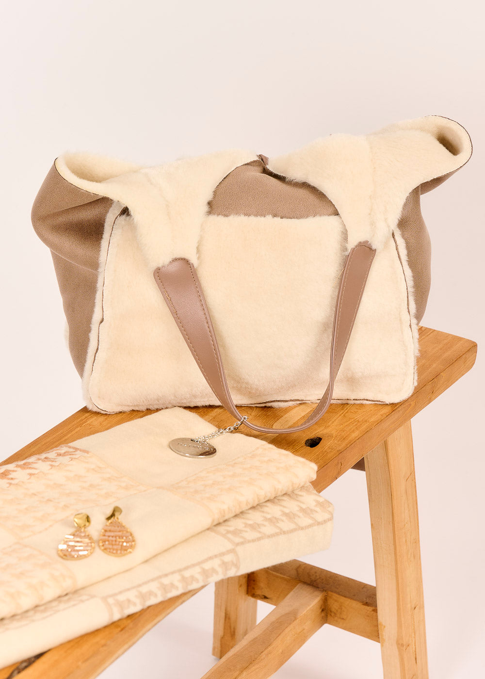 Diese Tasche ist mehr als ein Accessoire – sie ist ein kuscheliges Statement an Tagen, die sich sanft anfühlen sollen. Die harmonisch abgestimmten Farben lassen jeden Look weicher und wärmer wirken. Dabei bietet sie dir genug Platz für alles, was dir wichtig ist.