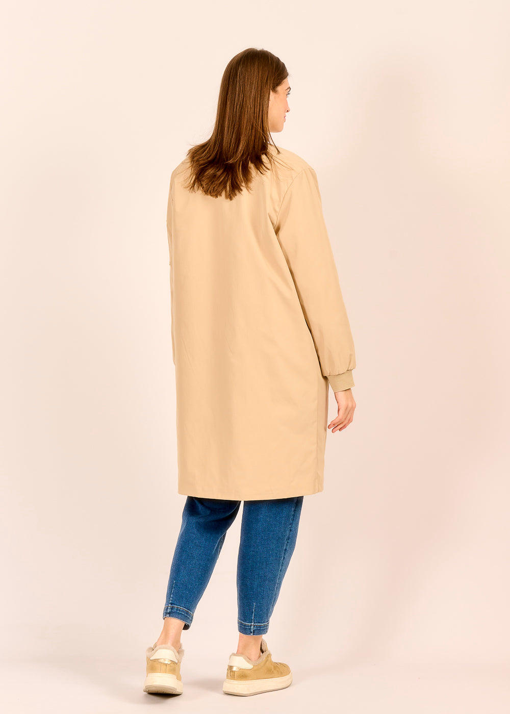 Für alle, die nach einem zeitlosen, modernen Übergangsstück suchen: Dieser leichte Longblouson ist perfekt für milde Temperaturen zwischen den Jahreszeiten. Ob klassisches Denim oder Frühlingsfarben – helles Beige ist eine harmonische Begleitung.