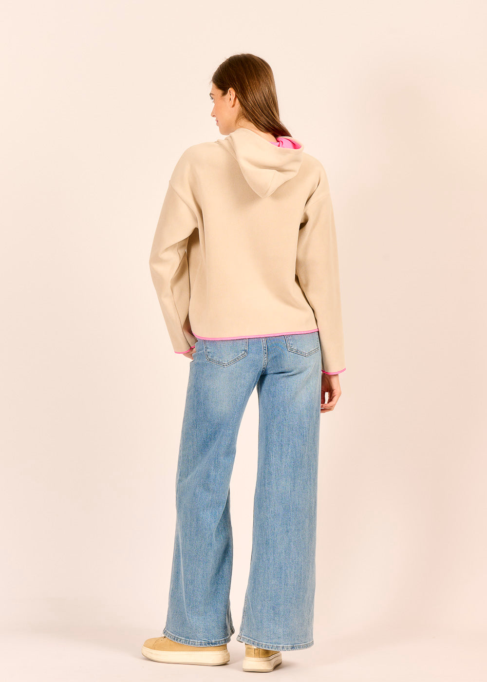 Raffiniertes Farbspiel: Der Fleece-Hoodie aus Viskose wird durch farblichen Kontrast an Kapuze und Saum zum echtem Blickfang. Die sanfte Grundfarbe trifft auf mutige Akzente und strahlt Ruhe und Energie zugleich aus – perfekt für deinen Freizeitlook.